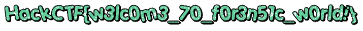 답:HackCTF{w3lc0m3_70_f0r3n51c_w0rld!}