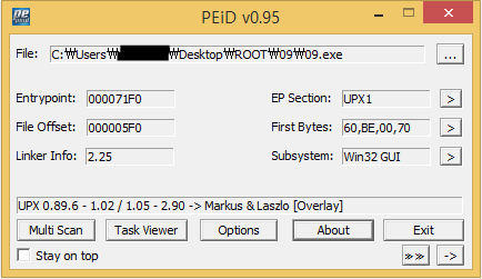 UPX로 패킹된 것을 확인할 수 있습니다.