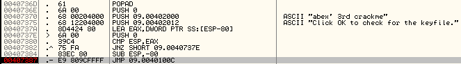 위 사진은 OEP로 가는 JMP와 그 근처의 코드입니다.