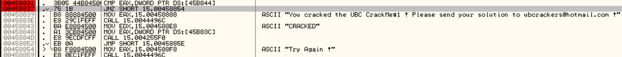 F9를 이용해서 실행시키고 비교할 때의 레지스터의 값을 확인해보겠습니다.