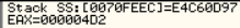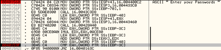 EAX에 들어있는 값은 0x4D2로 10진수로 1234입니다. 즉 입력한 값이 들어가 있다는 사실을 알 수 있습니다.