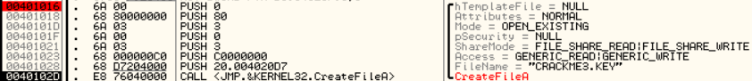 CreateFileA함수에서 FileName = "CRACKME3.KEY"라는 것이 보여서 문제 파일이 있는 폴더에 CRACKME3.KEY라는 파일을 만들어보았습니다.