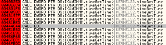모든 timeGetTime함수에 BP를 걸어줍니다.