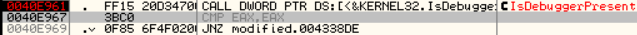 함수 목록에서 IsDebuggerPresent함수를 찾을 수 있었고 무력화시켜주었습니다.