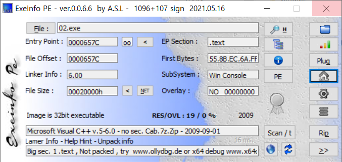 일단 ExeinfoPE를 이용한 정적 분석을 진행하겠습니다.