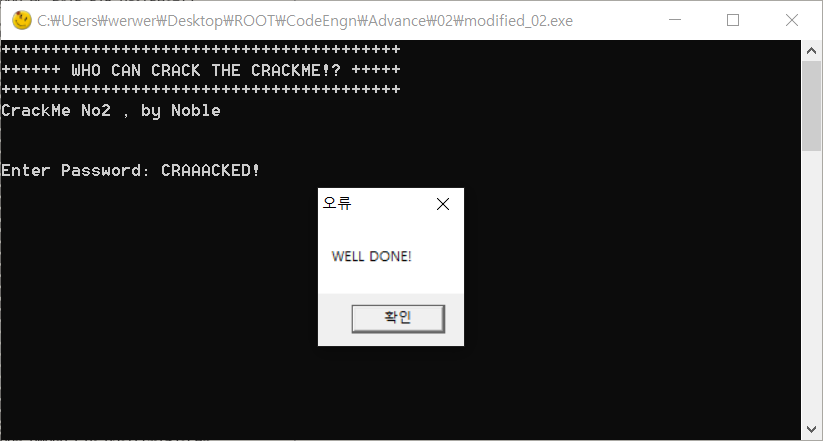 따라서 정답은 비교하는 값들을 문자로 바꾼 "CRAAACKED!"가 되겠습니다.