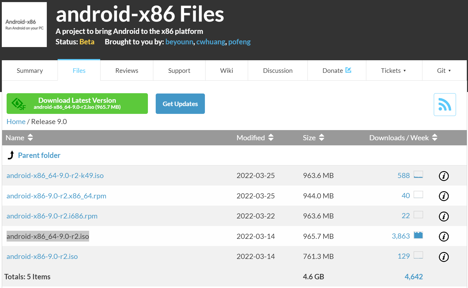 들어가면 여러 가지 파일이 있는데 저는 그중에서 android-x86_64-9.0-r2.iso 파일을 다운로드해주었습니다.